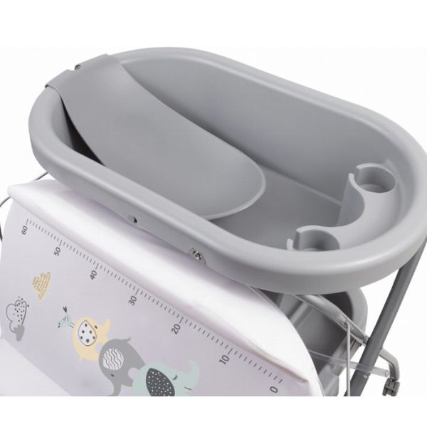 Podloga za presvlačenje je presvučene mekim materijalom a pored toga banjica ima i pokretne točkiće koji se mogu fiksirati tokom kupanja.