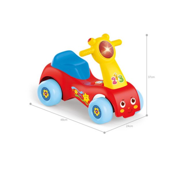 Veseo dizajn prilagodjen je najmladjima a ono što će mališane dodatno obradovati jeste to što guralica posjeduje zabevne zvučne efekte.