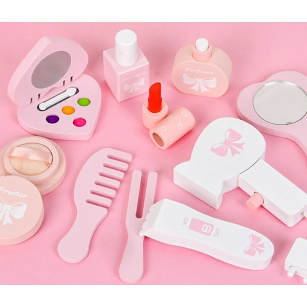 Ovaj zanimljivi set savršena je mini kopija kozmetičkog stočića pa će tako djevojčice uživati u igri i osmišljavanju zanimljivih uloga.