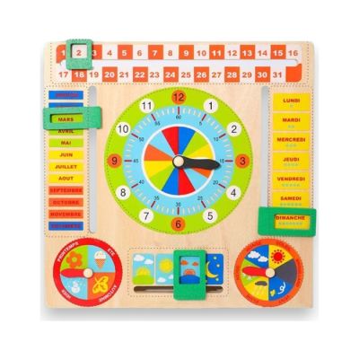 Igračka se sastoji od sata koji na sebi ima kalendarsku tablu s vremenom, datumom i danima u sedmici.