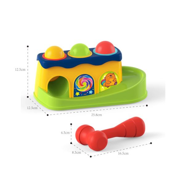 Cilj igre jeste da dijete mekim, gumiranim čekićem udaraju loptice koje će se onda kotrljati niz mini tobogan.