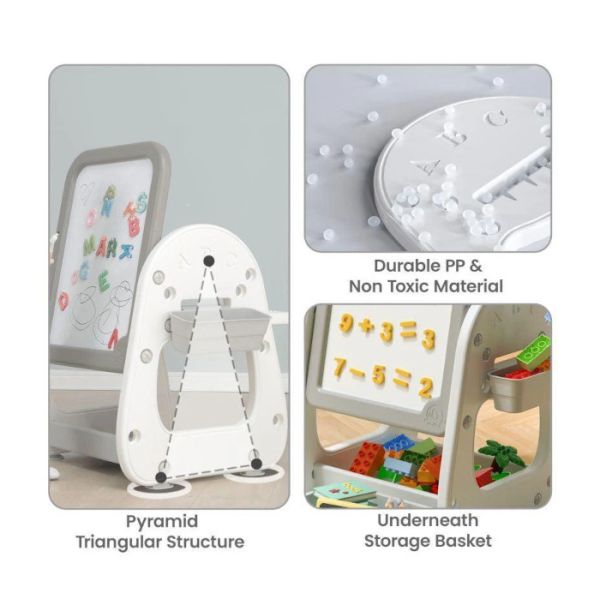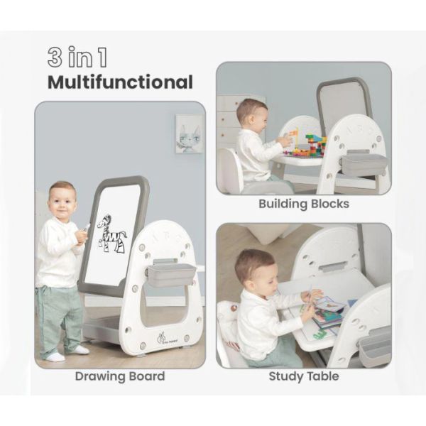Genius Picasso sto ima više funkcija pa ćete ga lako iz radnog stola pretvoriti u sto sto za crtanje ili sto za gradjenje i oblikovanje.(Sto je sa jedne strane praktična tabla za crtanje i pisanje markerima koji se brišu dok je sa druge strane magnetna tabla na kojoj će djeca redjati magnetna slova i brojeve i kroz igru učiti)