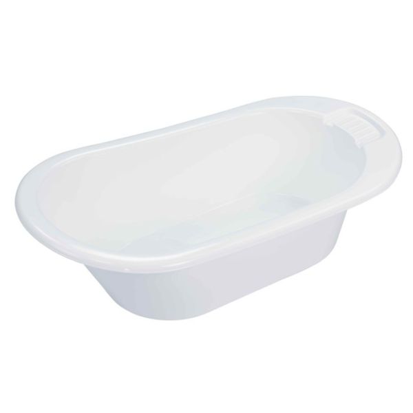 Kadica je nagnuta na jednu stranu, što vam omogućava da lako i udobno držite bebu. Kadica posjeduje otvor za odvod vode.