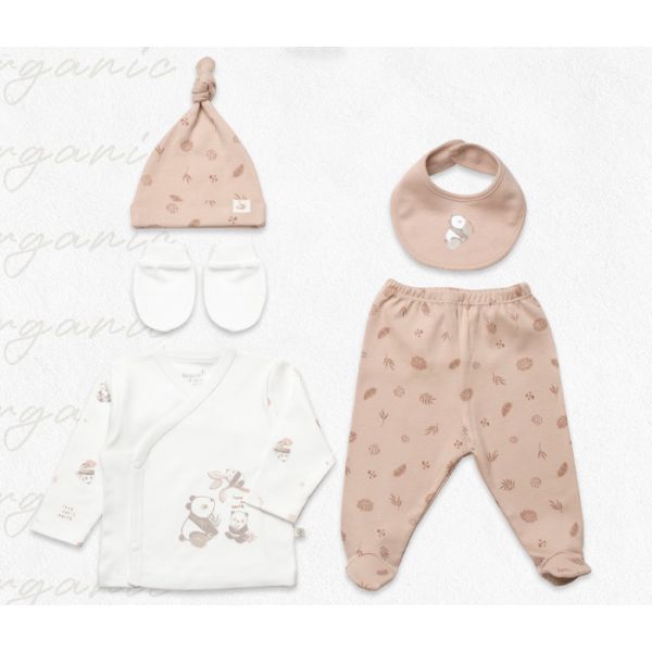 Bebi set za novorodence BiOrganic 5/1,braon/bež,56cm.
