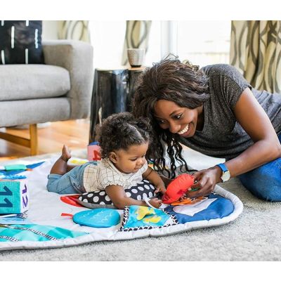 Uz pomoć ove vesele prostirke podstaknućete kreativnu igru gdje god krenete. Prostirka stvara udoban prostor za Vašu bebu da se bezbrižno pomjera, kreće i istražuje.
