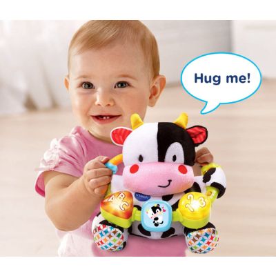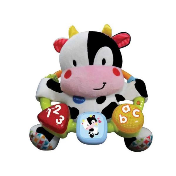 Upoznajte preslatku kravicu, meku igračku sa plastičnim prstenom.