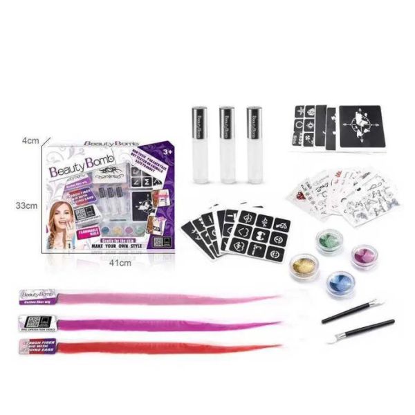 Tetovaže za djevojčice u setu sa puno dodataka. Ovaj kreativni set za "tetoviranje" sadrži sve što je potrebno da se djeca zabave i naprave zanimljive "tetovaže". Set sadrži nekoliko "tetovaža" na lepljenje, šablone za "tetoviranje", lijepak, šljokice i aplikator.