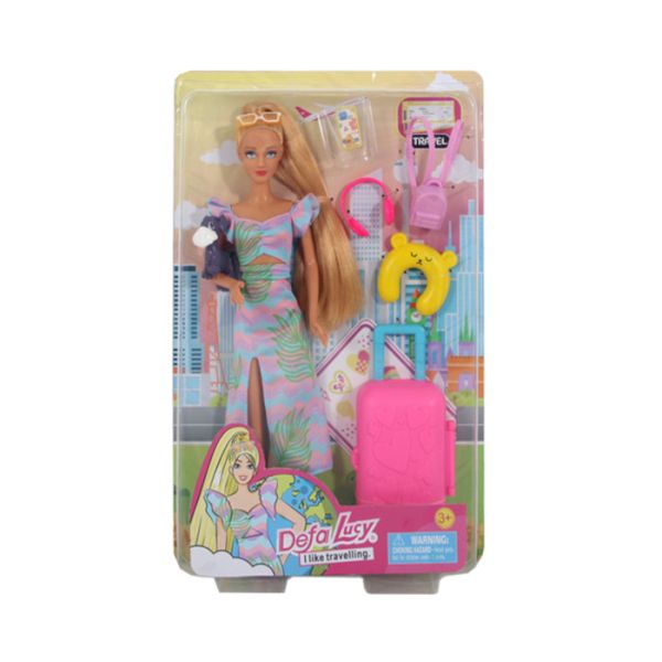 Predstavljamo Vam Defa lutkicu koja se upravo sprema za put pa se tako u setu nalaze i koferi i ostali dodaci za put ali sa njom putuje i njen ljubimac-kuca.