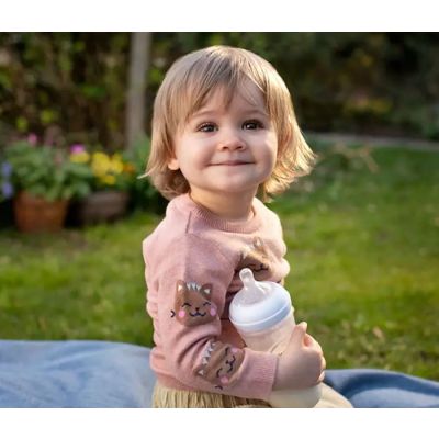 Zapremina bočice je 330ml ima cuclu 4 protoka. Kako je svaka beba drugačija, tako se ova flašica prilagodjava i odgovra bebama od rodjenja ali i onima od 6m"