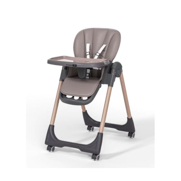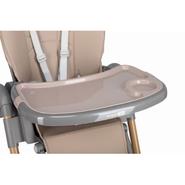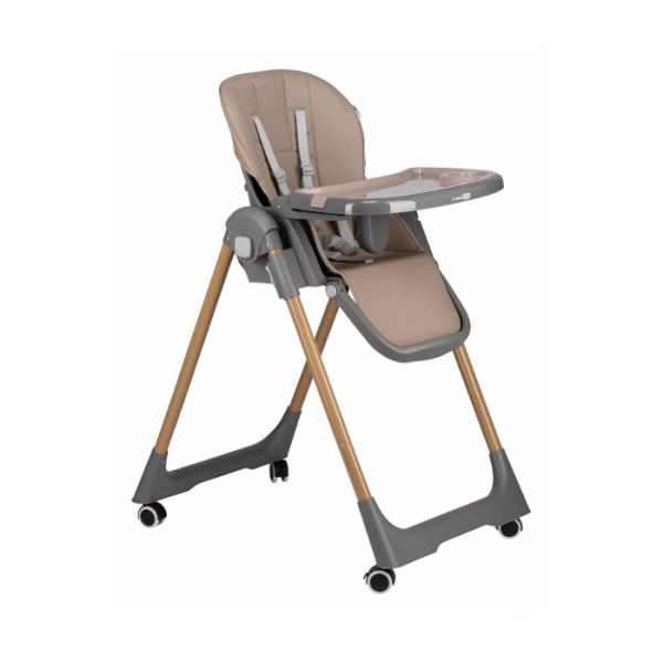 Za maksimalnu bezbjednost djeteta, hranilica je opremljena sigurnosnim pojasom u 5 tačaka koji drži dijete stabilnim tokom sjedenja. Stabilni nogari sa točkovima omogućavaju lako pomjeranje hranilice, dok se točkovi po potrebi mogu zaključati kako bi hranilica ostala potpuno stabilna.