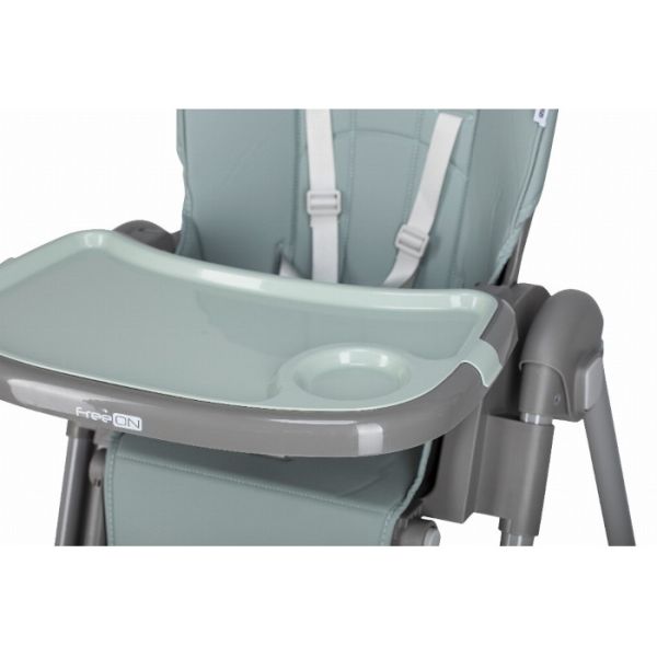 Za maksimalnu bezbjednost djeteta, hranilica je opremljena sigurnosnim pojasom u 5 tačaka koji drži dijete stabilnim tokom sjedenja. Stabilni nogari sa točkovima omogućavaju lako pomjeranje hranilice, dok se točkovi po potrebi mogu zaključati kako bi hranilica ostala potpuno stabilna.
