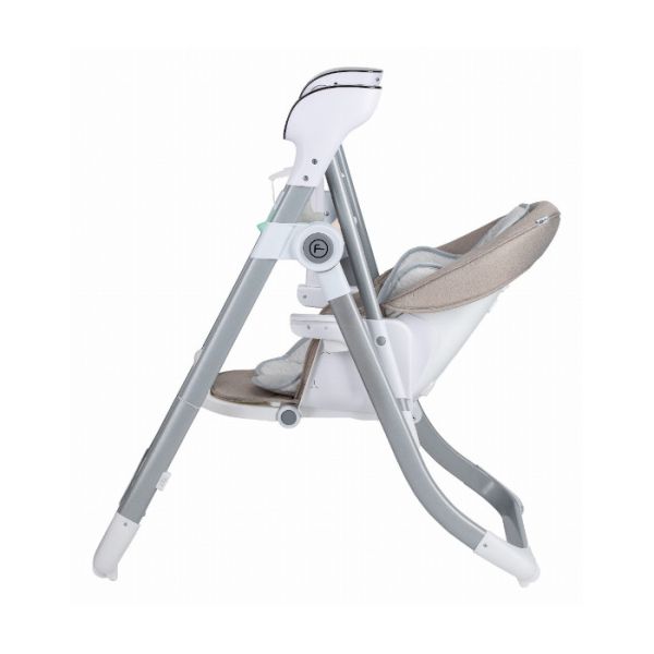 Uklanjanjem poslužavnika i postavljanjem luka za igračke, hranilica se lako transformiše u ljuljašku za bebe koja posjeduje 5 različitih brzina ljuljanja, koje možete kontrolirati putem daljinskog upravljača. Ljuljaška je takodje opremljena tajmerom i detektorom pokreta. 12 melodija i 5 zvukova prirode će zabaviti Vaše dijete dok se ljulja.