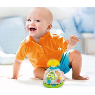 Igračka je pogodna za malu djecu. Dovoljno je samo da pritisnu dogme na vrhu i zabava počinje.