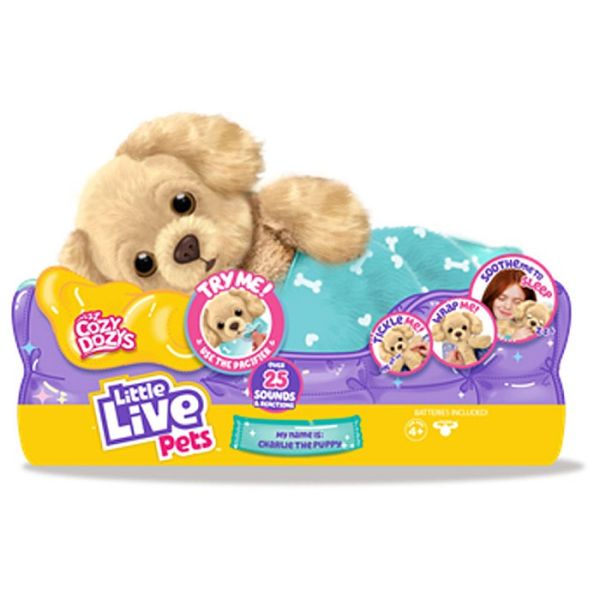 Upoznajte preslatku plišanu igračkicu kucu. Njegovo ime je Charlie. Sa preko 25 različitih zvukova i reakcija, Charlie interaktivna kuca je savršen kućni ljubimac! On je super mekan i umiljat,i savršen je drug za spavanje. Charlie reaguje na golicanje po stomaku i maženje po glavi. Uključeno je meko ćebe da ušuškate svog ljubimca kao i plava cucla koja pomaže Charlie-ju da zaspi. Igračkica radi na baterije koje su uključene u set.