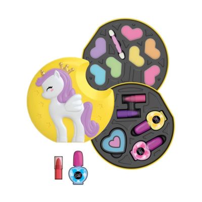 Zabavni Clementoni set koji će oduševiti sve djevojčice. U setu se nalazi set za šminkanje sa aplikatorima i sjenkama u obliku jednoroga. Našminkaj se kao prava princeza i iskaži svoju kreativnu stranu. U setu se nalaze sjenke, aplikatori, lakovi za nokte, karmini. Set je iz 2 dijela. Pored toga pakovanje je malo i komapaktno i možete ga ponijetei sa sobom gdje god da krenete. Ovu kreativnu igru može igrati više drugarica. Možete se i takmičiti čija kreacija će biti "sjajnija".