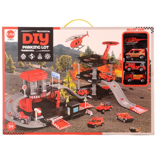 Igračka garaža sa 3 vozila na potez i avionom