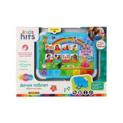 Dobro došli u svijet bajke. Kids Hits brend Vam predstavlja zanimljivi tablet koji će "upoznati" mališane sa likovima iz bajki a zati će kroz zabavni kviz testirati njihovo znanje o njima.