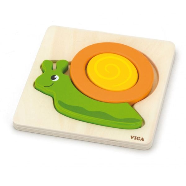 Viga proizvodi izradjeni su od kvalitetnog drveta, netoksičnog i bezbjednog za djecu. Sve igračke su ručno bojane. Ovoga puta Viga brend Vam predstavlja drvenu slagalicu Puž koja se sastoji od 3 komada.