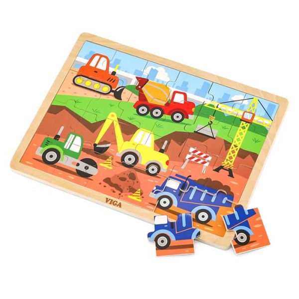 Viga proizvodi izradjeni su od kvalitetnog drveta, netoksičnog i bezbjednog za djecu. Sve igračke su ručno bojane. Ovoga puta Viga brend Vam predstavlja drvenu slagalicu Vozila koja se sastoji od 24 komada.