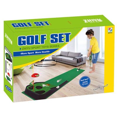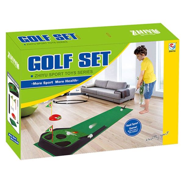 Zabavna igra mini golf set koji se mođe igrati samostalno ili u društvu. Set čini teren zelene boje, zastavice kao i rupice baš kao na pravom terenu za golf. U setu se takodje nalazi jedan štap i loptica. Set je napravljen od kvalitetne plastike. Dužina terena je 2 m. Povoljno djeluje na kordinaciju i jačanje fine motorike djeteta.