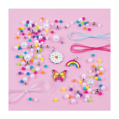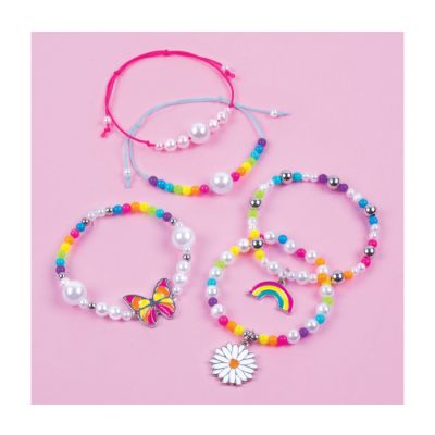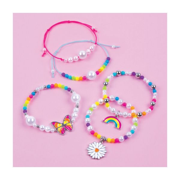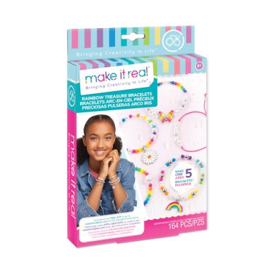 Make It Real set za pravljenje nakita, omogućava kreiranje 5 fantastičnih narukvica u živopisnim duginim bojama.