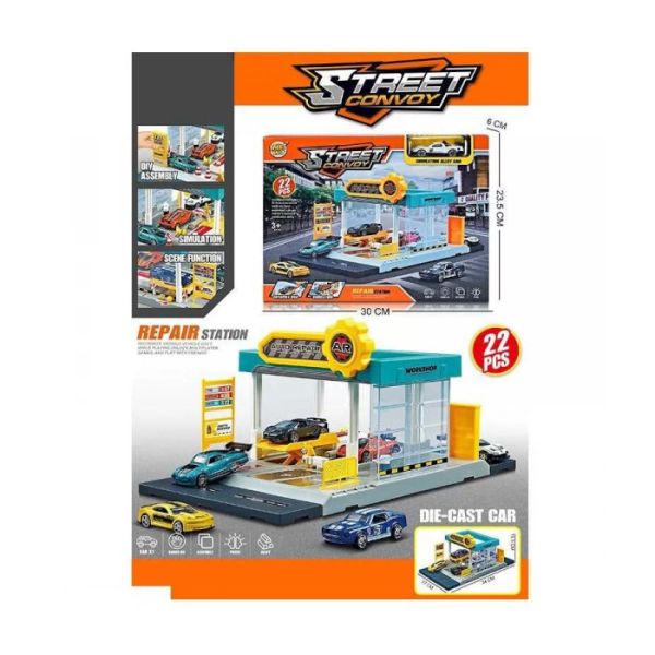 Zanimljivo urađen set koji predstavlja pravi mali auto servis oduševiše sve mališane koji obožavaju ovakve igračke.