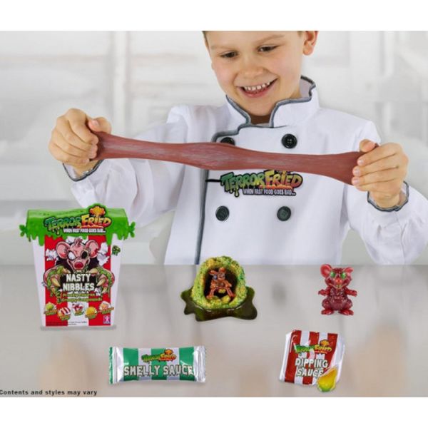 Terror Fried igračke sadrže mini ljugavce, koje možeš stiskati, gnječiti.