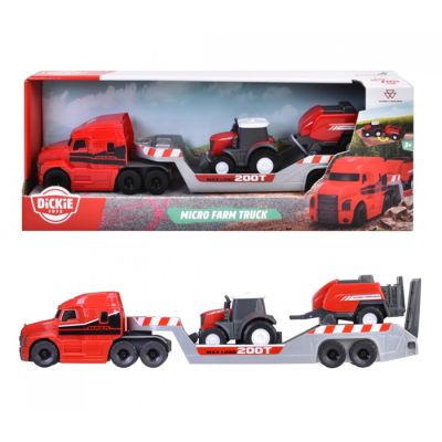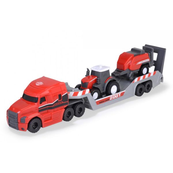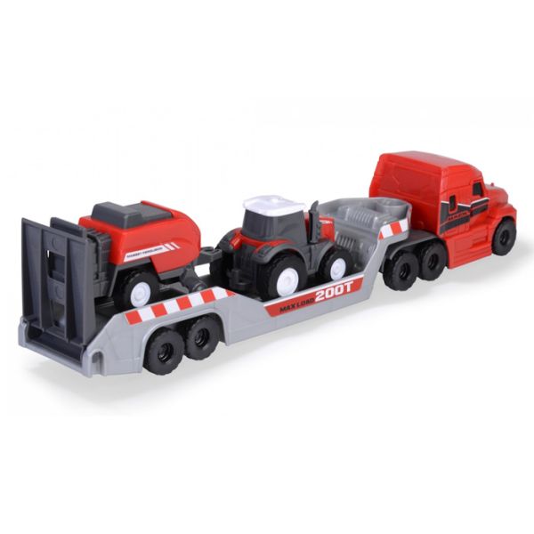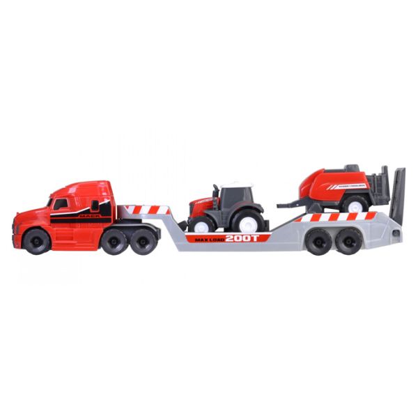 Set se sastoji od od velikog kamiona za prevoz vozila, traktora i prikolice.