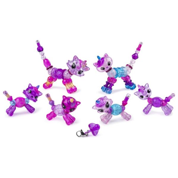 Da biste se transformisali u narukvicu, razdvojite i povežite dva kraja. Ovaj komplet prepun dragulja sadrži tri preslatka Tvisti Petz. Nije pogodno za mladje od 36 mjeseci.
