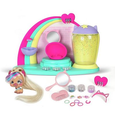 Još jedna sjajna igračka za sve djevojčice koje uživaju u uljepšavanju i modi.U ovom salonu svi slatki psi njeguju dugu kosu. Set uključuje čak 15 iznenadjenja.U setu možete pronaći ogledalo, češalj, naljepnice i ukosnice za kosu sa ostalim super cool dodacima za kosu.