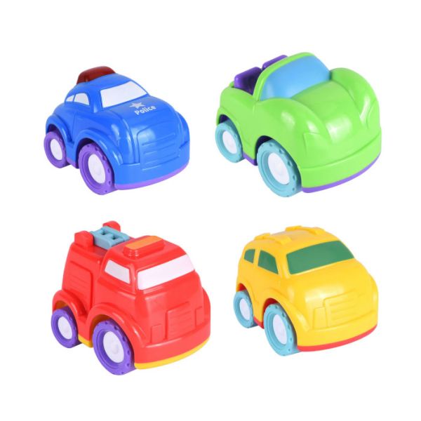 Infunbebe igračka 4 u 1 sadrži četiri vozila u različitim bojama i različitog izgleda.