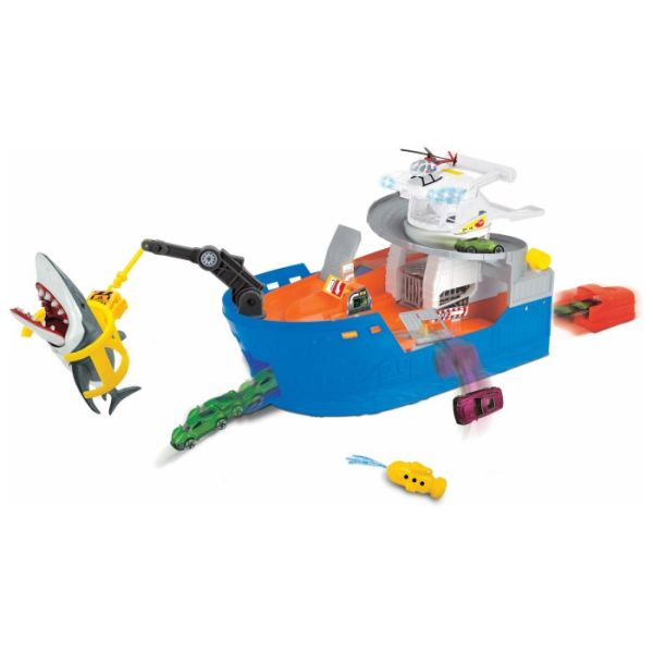 Upoznajte super moćni Simba brodić koji je napravljen po ugledu na stvarni model i posjeduje realistične zvučne i svjetlosne efekte i ima jako "opasnu" misiju-hvatanje strašnih ajkula. U setu se nalazi i autić i helikopter i figuricu ajkule.Veličina igračke je 20 cm.