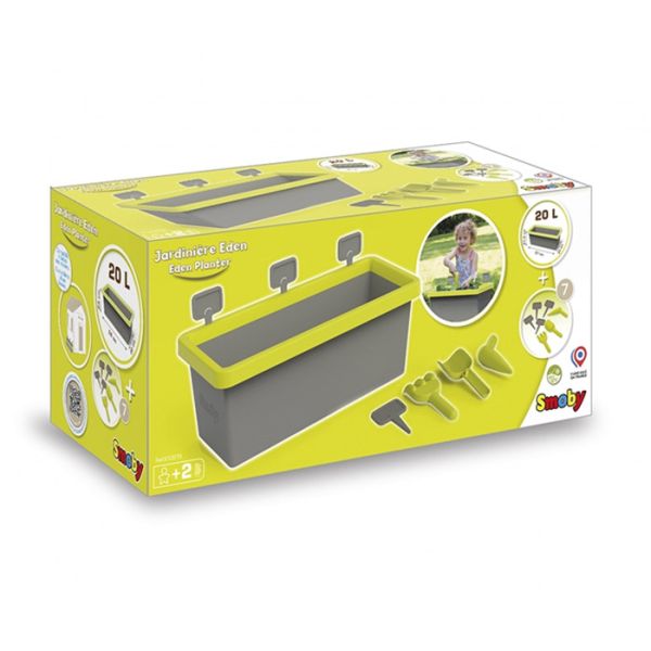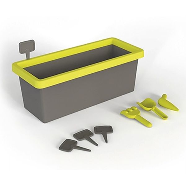 U setu se nalazi velika saksija, 1 lopatica, 1 grabulja kao i mini table ta označavanje onoga što je posadjeno.(Piše se kredom)