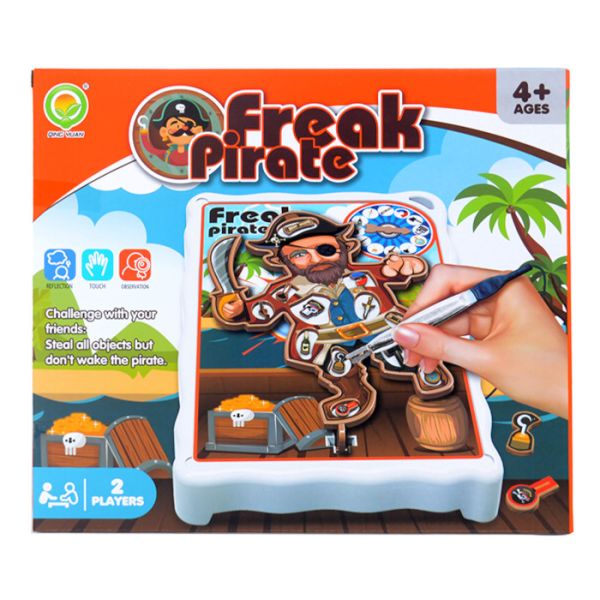 U setu se nalazi tabla sa piratom i 12 šarenih dodataka za igru.