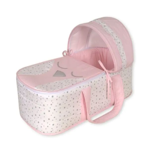 Nosiljka za bebe napravljena je od pamučnog materijala sa obodom od sundjera i posjeduje meko dno napravljeno od sundjerastog dušeka. (Tenda na nosiljci se lako skida i ponovo postavlja zahvaljujući rajsferšlusu)