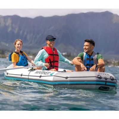 Intex Mariner 4 je vrhunski čamac na naduvavanje koji se lako naduvava, još lakše izduvava i pakuje, i izuzetno lako transporuje u torbi koju dobijate u paketu. Bilo da ste krenuli na more, jezero, rijeku ili na pecanje, ovaj čamac predstavlja izvanredno rješenje - ima povoljnu cijenu i lako se transportuje i čuva. Ovo nije dječiji čamac već ozbiljan čamac sa mogućnošću nošenja vanbrodskog motora snage do 3 konjske snage. Predviđen je da prevoz za 4 osobe uz dimenzije od 3.3 metra dužine i 1.45 metara širine. Izrađen je u skladu sa glavnim standardima kvaliteta za ovu vrstu plovila od vrhunskih materijala koji se primjenjuju u proizvodnji čamaca na naduvavanje. Idealan je za ljude koji vole vodu ali nemaju mogućnost da održavaju klasičan čamac. Sa Intex Marinerom 4 ste spremni da kada god krenete na odmor, imate divnu avanturu i potpuno novo iskustvo uživanja na vodi.