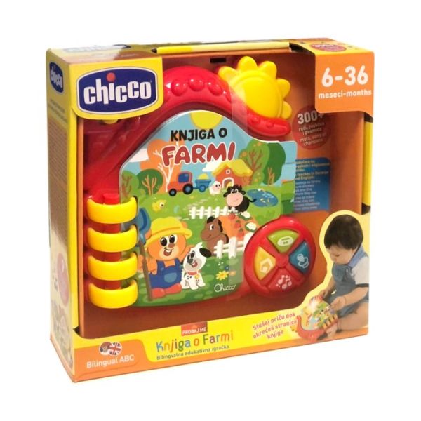 Chicco knjiga o farmi sadrži više od 300 riječi, zabavnih zvukova i veselih melodija koje će dijete rado kroz igru učiti i pamtiti.