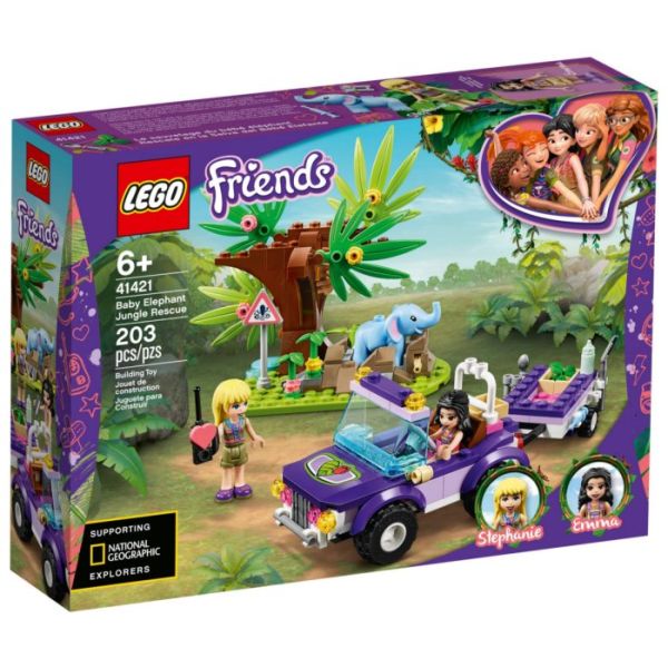Lego Friends Spašavanje malog slončeta je set koji se sastoji od 203 dijela i uključuje figure Stefani i Eme. Lego Friends setovi sadrže realistične figure i prikazuju scene života u zamišljenom gradu Hartlendu.Uzkocke Lego Friends djeca će krenuti uavanturu sa glavnim junakinjama ovog šarenog grada. Osim toga kocke Lego Friends napravljene su od kvalitetnog materijala što ih čini bezbjednim za Vašu djecu. Podstaknite kreativnosti maštu vašeg djeteta.