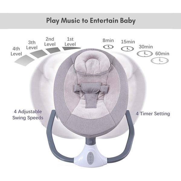 Roditelji pomoću daljinskog upravljača mogu podesiti tajmer, način ljuljanja i muziku.