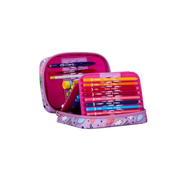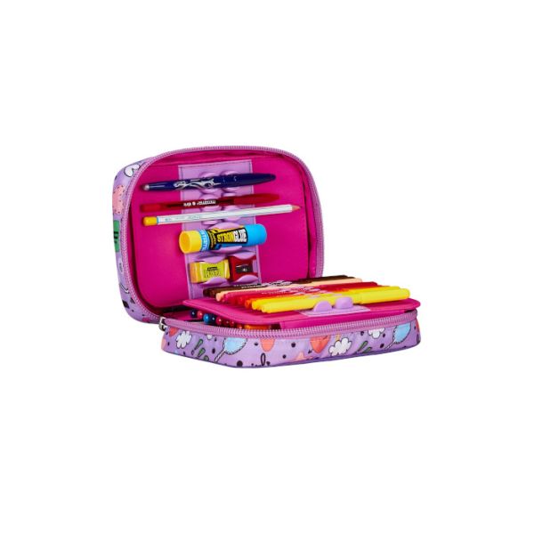 Pernica sadrži 44 dijela: 18 bojica, 18 markera, 1 plava hemijska olovka-piši briši, 1 crvena hemijska olovka, 1 olovka HB, 1 gumica, 1 oštraljka, 1 ljepilo u stiku, 1 lenjir, 1 metalne makaze"