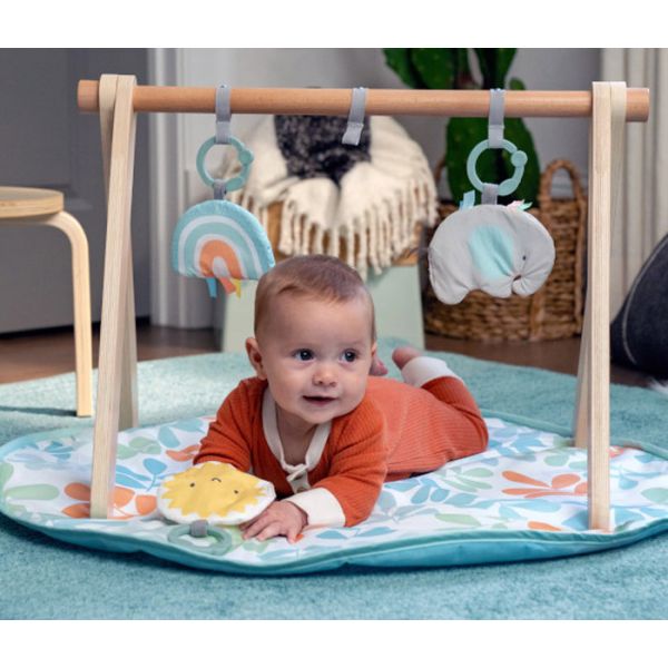 Igračkice različitih tekstura i dimenzija dodatno će podstaći dijete na igru i istraživanje. Luk sa igračkama se može skidati pa se podloga može koristiti kao mini gimnastička podloga . Lijepe,vesele boje i mek materijal godiće Vašoj bebi i učiniti igru i vježbanje zabavnim.