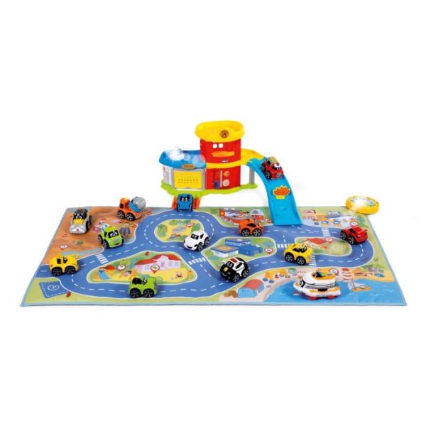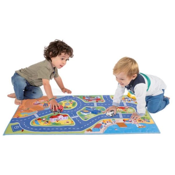 Podloga sa stazom i simulacijom grada dimenzija 110x60cm i sa uključenim autićem u pakovanju.