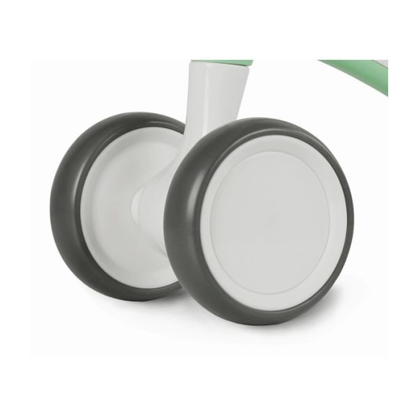 Kombinacija nježno zelene boje sa detaljima u boji čokolade (sjedište i ručke) daje mu bezvremenski, "vintage" izgled koji se izdvaja od običnih plastičnih guralica.