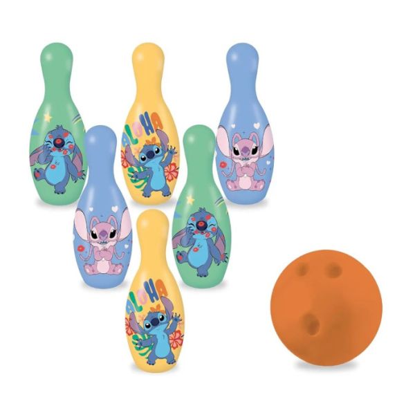 Set uključuje 6 kegli i jednu kuglu sa temom omiljenog Stitch-a.
