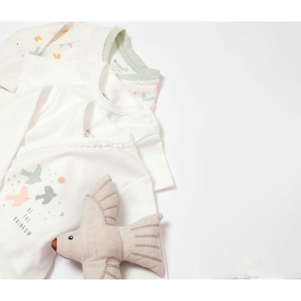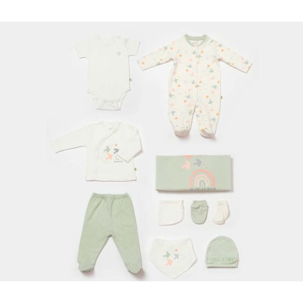 Set za novorođenče BiOrganic 10 dijelova ptičice bež/zelena 56 cm