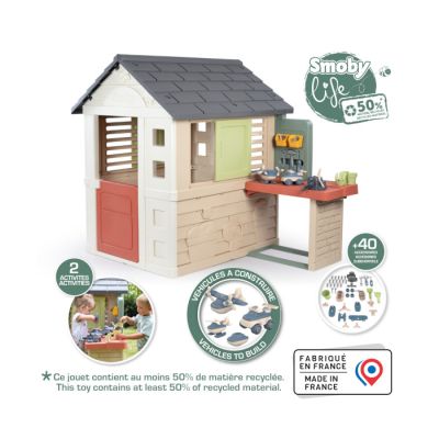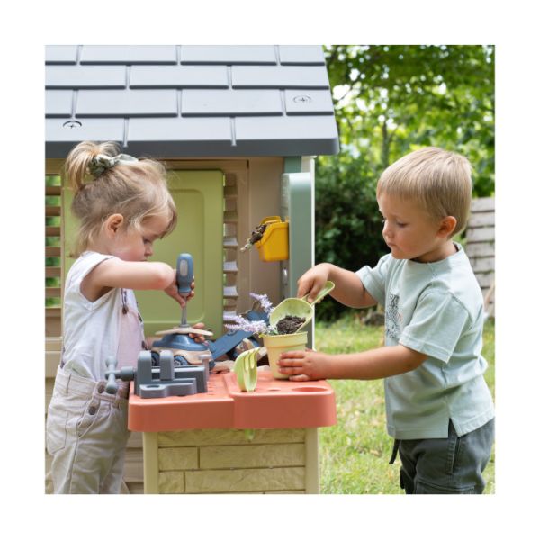Ova Smoby kućica napravljena je kao mini zabavni vrtni centar u kome se mališani mogu ponašati kao pravi mali baštovani ali i majstori koji će praviti zanimljive stvari u kućici.