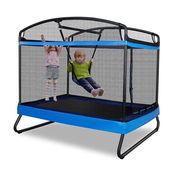 Predstavljamo Vam zanimljivu trampolinu koja kombinuje fiše funkcija-ovo je ujedno trmpolina ali se unutar same trampoline nalazi i odvojiva ljuljaška koja se postavlja na nosećoj vodoravnoj šipci.