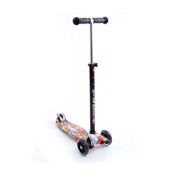 Trotinet posjeduje 3 točka, 2 prednja i 1 zadnji.Točkovi su meki, lako okretni, silikonski i svijetle kada se okreću.